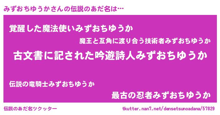 | ヘコむあだ名 | 『みずおちゆうか(笑)』『みずお』 |
