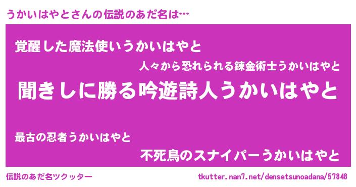 | 意味不明あだ名 | 『自称うかいはやと』 |
