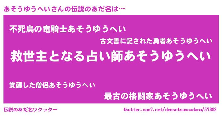 | ヒーロー風カッコイイあだ名 | 『慈愛の使者あそうゆうへい』 |