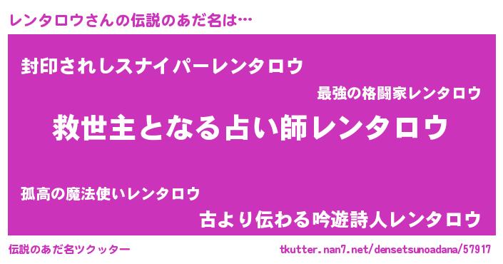 | ヘコむあだ名 | 『レンにゅー』『レンタロウ(遠い目)』 |