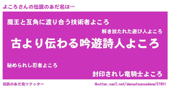 | ヒーロー風カッコイイあだ名 | 『ネオヨコロ』『慈愛の使者よころ』 |