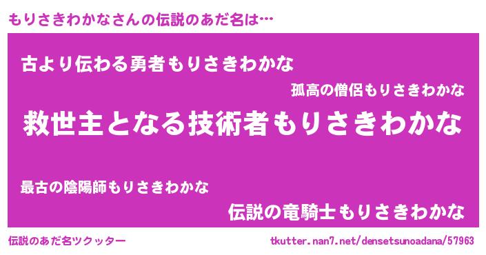 | 男性向けラノベタイトル風あだ名 | 『ノーゲーム・ノーモリサキワカナ』 |