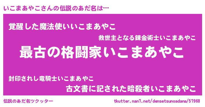| ヒーロー風カッコイイあだ名 | 『ウルトラいこまあやこマン』 |