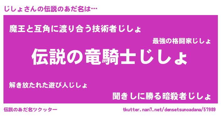 | ファンタジー風あだ名 | 『ジシフェル』『ゼジシトゥ』 |