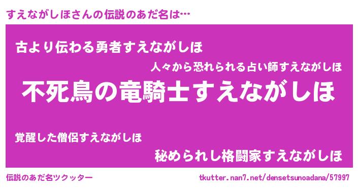 | ヒーロー風カッコイイあだ名 | 『スーパースエナガシホ』『仮面スエダー』 |