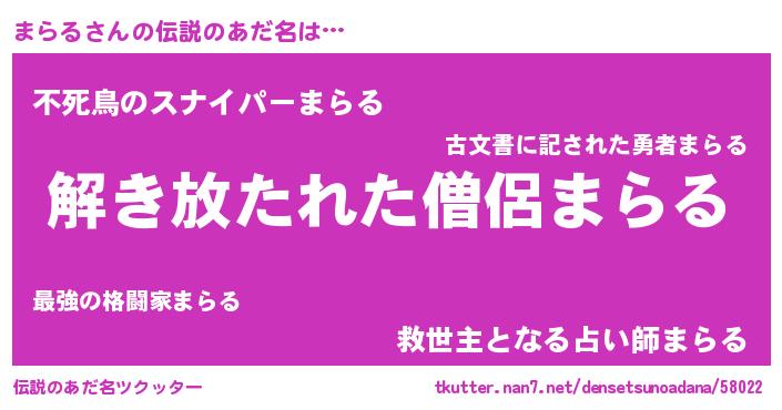 | 意味不明あだ名 | 『自称まらる』『とにかく怪しいまらる』 |