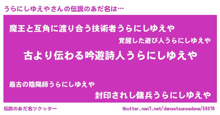 | 意味不明あだ名 | 『永久保存うらにしゆえや』 |