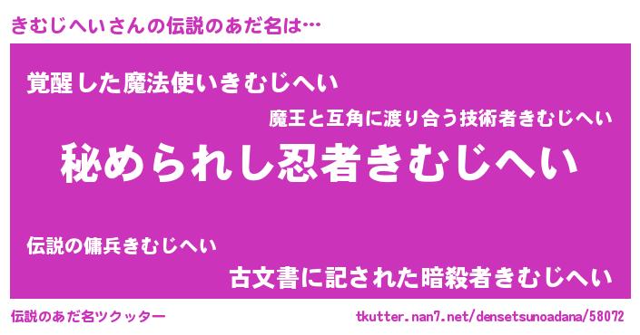 | 意味不明あだ名 | 『住所不定無職きむじへい(62歳)』 |