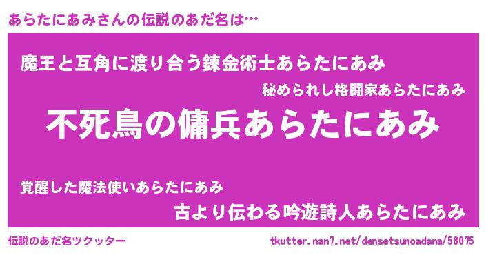 | 胡散臭い通販商品みたいなあだ名 | 『テレビで話題のアガリクス…その名も「あらたにあみ」』 |