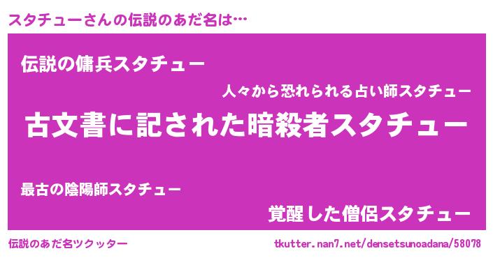 | ヒーロー風カッコイイあだ名 | 『究極戦士スタチュー』『ネオスタチュー』 |