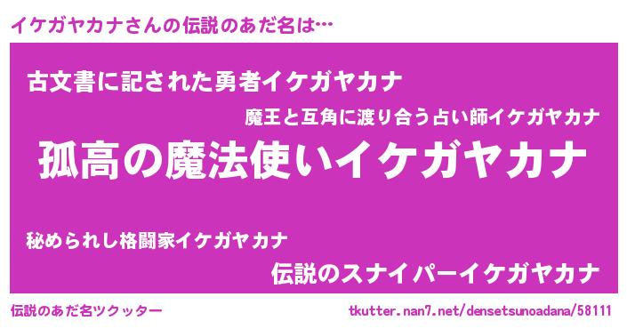 | 意味不明あだ名 | 『とにかく怪しいイケガヤカナ』 |