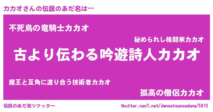 | ヒーロー風カッコイイあだ名 | 『ネオカカオ』『スーパーカカオ』 |