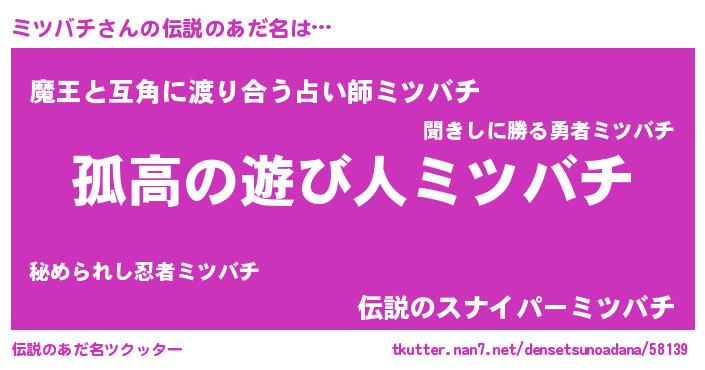 | 意味不明あだ名 | 『住所不定無職ミツバチ(81歳)』 |