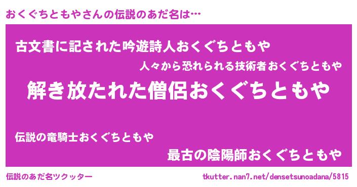 | 意味不明あだ名 | 『自称おくぐちともや』 |