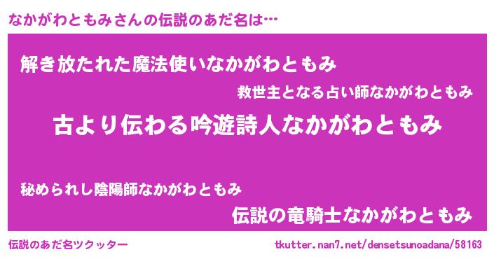 | 意味不明あだ名 | 『永久保存なかがわともみ』 |