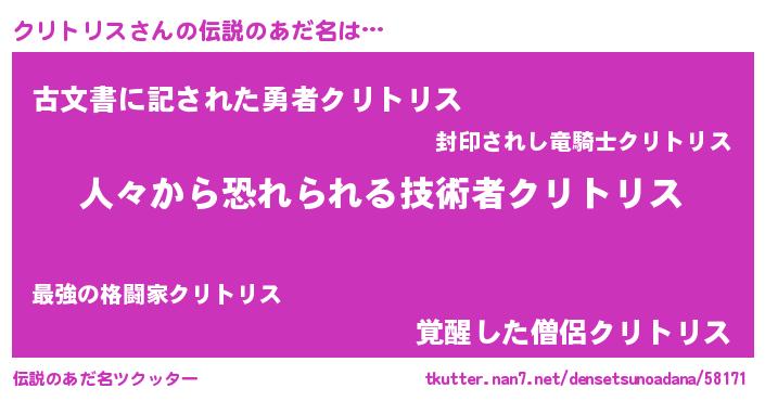 | ヘコむあだ名 | 『クリトリス(小並感)』『クリっちょ』 |