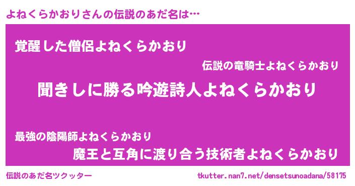 | 肩書あだ名 | 『よねくらかおり閣下』 |
