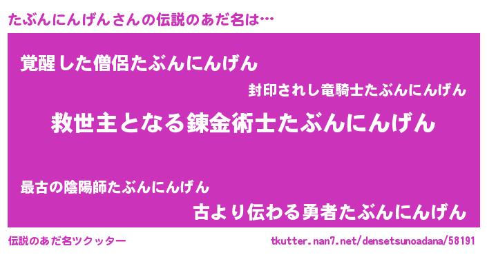 | 意味不明あだ名 | 『自称たぶんにんげん』 |
