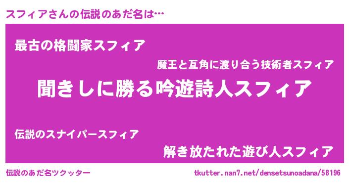 | 意味不明あだ名 | 『住所不定無職スフィア(13歳)』 |
