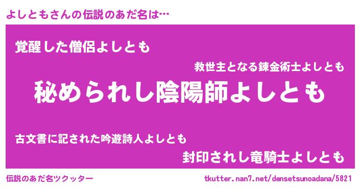 | ポケモン風あだ名 | 『ヨシトダネ』『ヒヨシトモ』 |