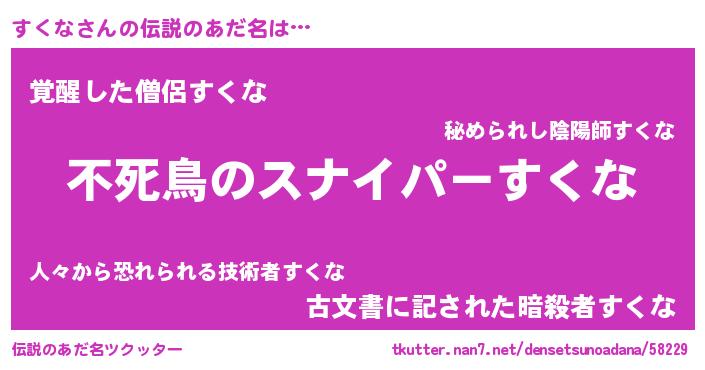 | 胡散臭い通販商品みたいなあだ名 | 『モテモテ間違いなし霊験あらたかなお札…その名も「すくな」』 |
