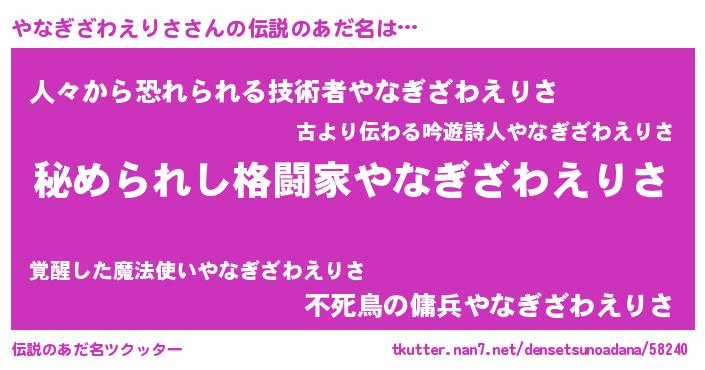 | 意味不明あだ名 | 『自称やなぎざわえりさ』 |