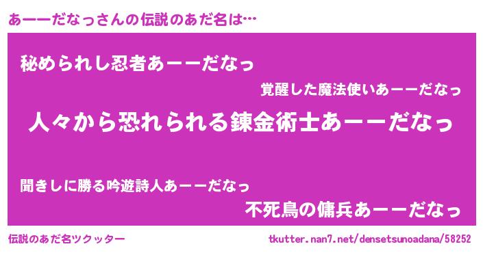 | 胡散臭い通販商品みたいなあだ名 | 『100人中100人が認めた隕石のかけら…その名も「あーーだなっ」』 |