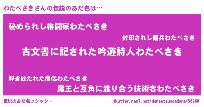 | ヒーロー風カッコイイあだ名 | 『ネオワタベサキ』『仮面ワタダー』 |