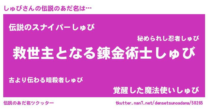 | 男性向けラノベタイトル風あだ名 | 『ノーゲーム・ノーシュビ』 |
