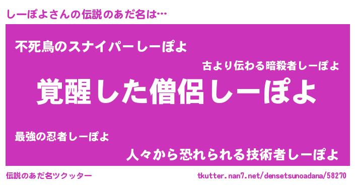 | 意味不明あだ名 | 『とにかく怪しいしーぽよ』 |