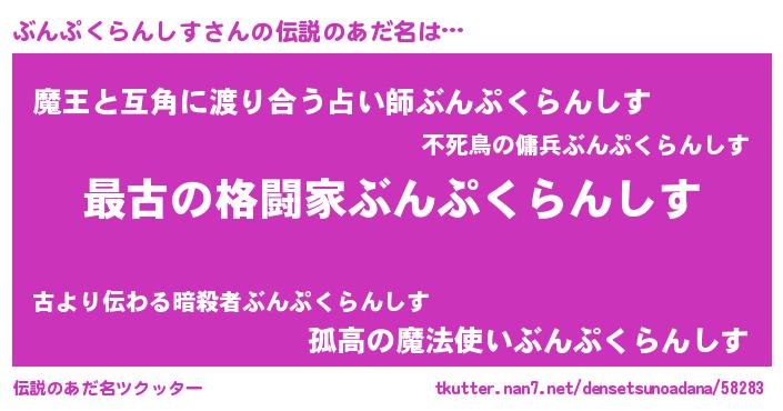 | 意味不明あだ名 | 『ぶんぷくらんしすフォーエバー』 |
