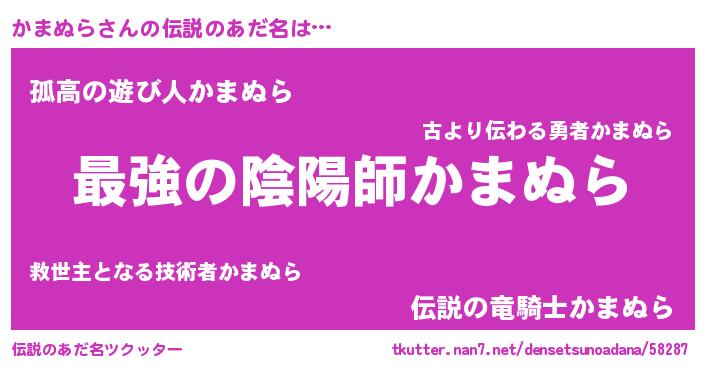| ヒーロー風カッコイイあだ名 | 『ウルトラかまぬらマン』『暗黒騎士カマ』 |