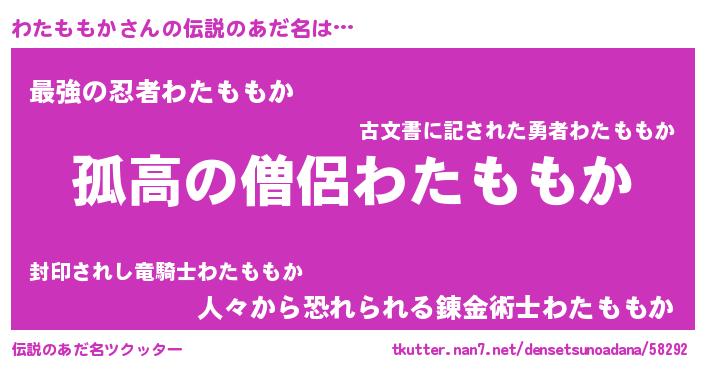 | 女子向けラノベタイトル風あだ名 | 『わたももかなんてお断りですっ。』 |