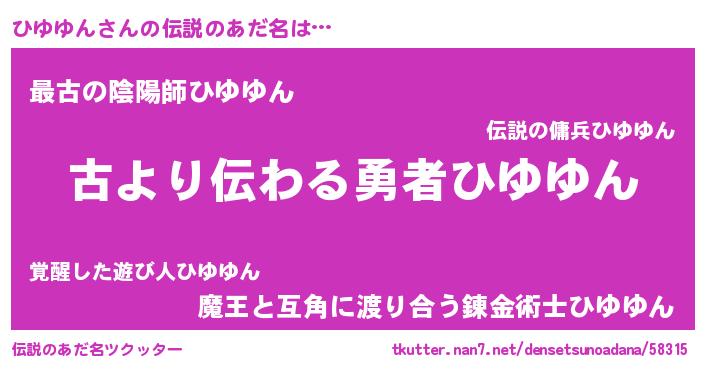 | ヒーロー風カッコイイあだ名 | 『ネオヒユユン』『ウルトラひゆゆんマン』 |