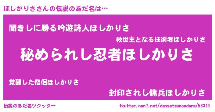| ヒーロー風カッコイイあだ名 | 『ウルトラほしかりさマン』 |
