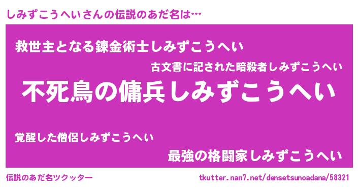 | ヒーロー風カッコイイあだ名 | 『スーパーシミズコウヘイ』 |