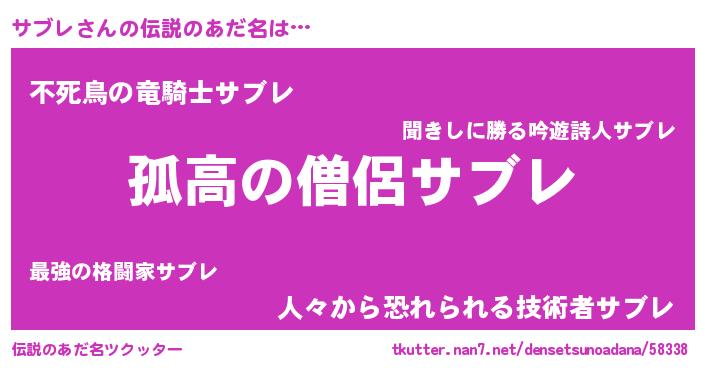 | 男性向けラノベタイトル風あだ名 | 『サブレスレイヤー』『サブレの憂鬱』 |