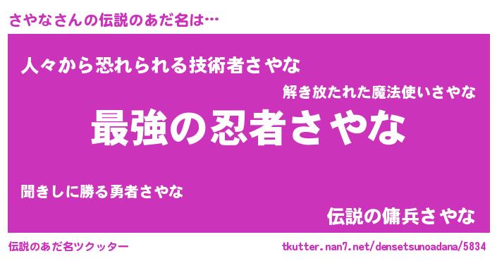 | ヒーロー風カッコイイあだ名 | 『ウルトラさやなマン』『仮面サヤダー』 |