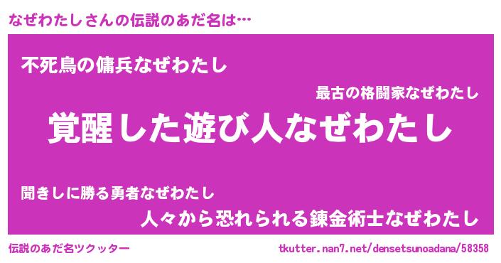 | ヒーロー風カッコイイあだ名 | 『炎刃騎士ナゼ』『スーパーナゼワタシ』 |