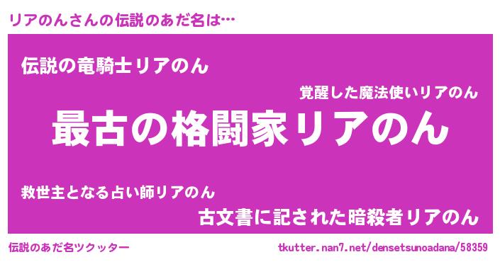 | 意味不明あだ名 | 『リアのんフォーエバー』『自称リアのん』 |