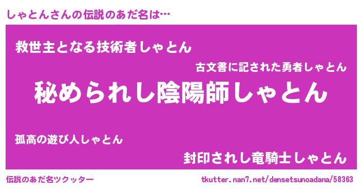 | 男性向けラノベタイトル風あだ名 | 『やはりしゃとんの青春ラブコメはまちがっている 』 |
