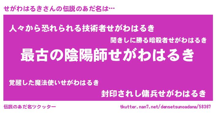 | 肩書あだ名 | 『せがわはるき国家主席』 |