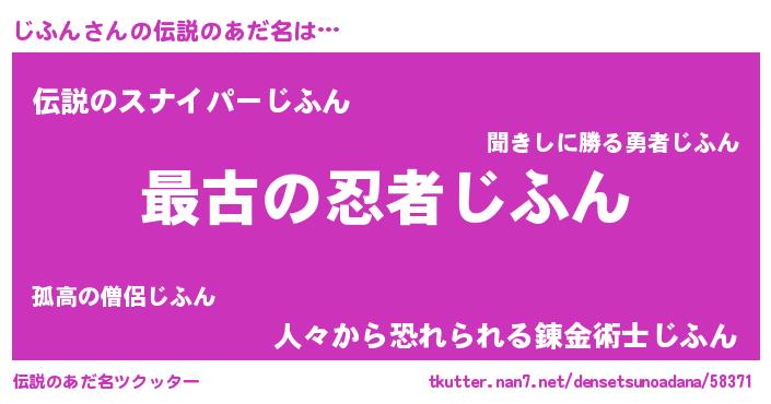| 意味不明あだ名 | 『住所不定無職じふん(65歳)』『自称じふん』 |
