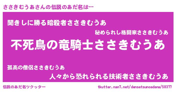 | 意味不明あだ名 | 『自称ささきむうあ』 |