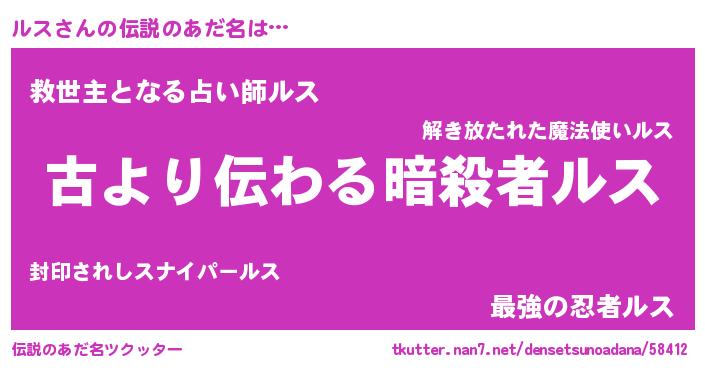 | ヒーロー風カッコイイあだ名 | 『ネオルス』『愛の使者ルス』 |