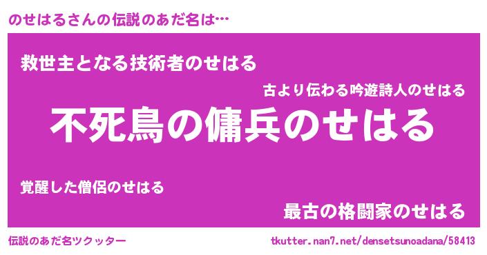 | ヒーロー風カッコイイあだ名 | 『スーパーノセハル』『仮面ノセダー』 |