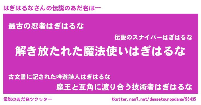 | 胡散臭い通販商品みたいなあだ名 | 『伝統あるサプリメント…その名も「はぎはるな」』 |