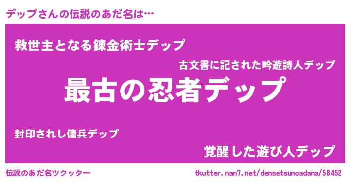 | 男性向けラノベタイトル風あだ名 | 『やはりデップの青春ラブコメはまちがっている 』 |