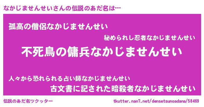 | 男性向けラノベタイトル風あだ名 | 『ナカジマセンセイアートオンライン』 |