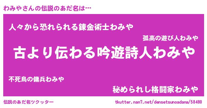 | ヒーロー風カッコイイあだ名 | 『ネオワミヤ』『愛の使者わみや』 |
